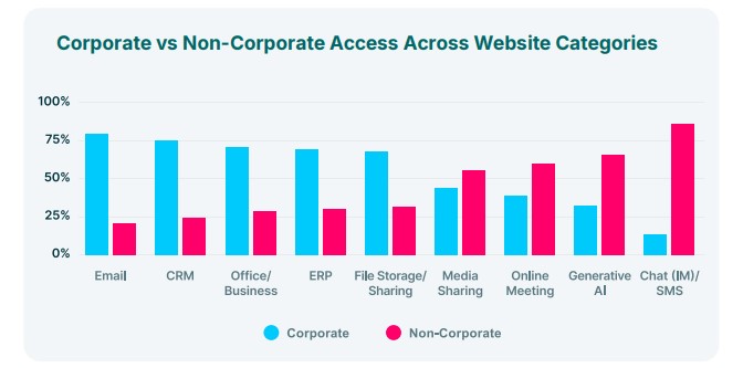 אם חשבתם שכאן נגמרות הצרות, אז לא – הדוח מגלה שהכאוס מגיע לליבת ה־SaaS הארגונית. הזהות הדיגיטלית של העובדים הופכת לנקודת תורפה: 87% מהפעילות באפליקציות מסרים מיידיים, כמו וואטסאפ וטלגרם, נעשית דרך חשבונות פרטיים שאינם מנוהלים על ידי הארגון, ו־62% מההדבקות שם כוללות מידע אישי או פיננסי. המשמעות ברורה: גם בלי כוונה רעה, העובדים עצמם הופכים לערוץ בלתי מפוקח לדליפת מידע רגיש ולחשיפת זהויות ארגוניות.